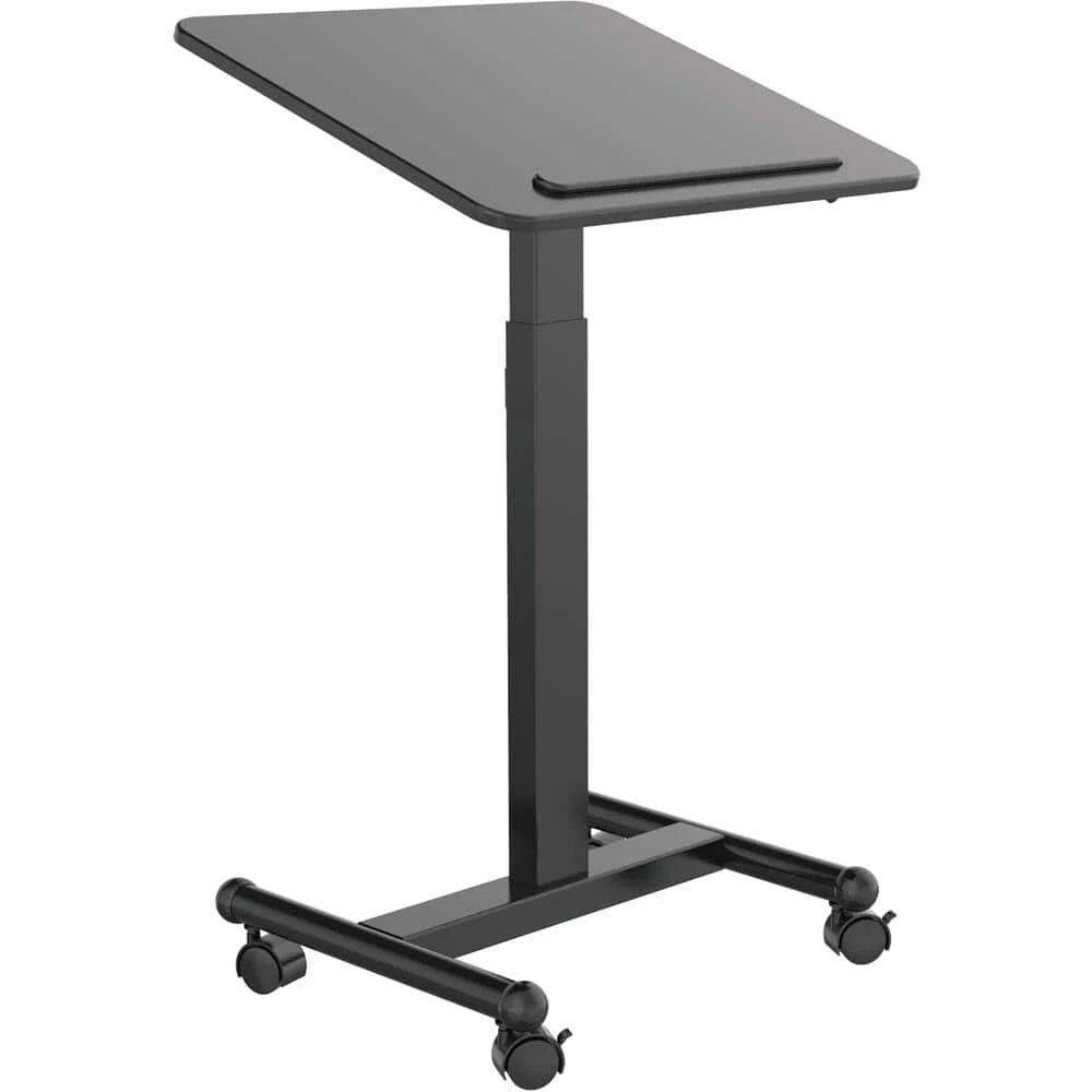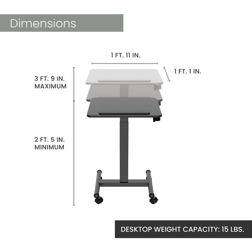 - MOBILE ROLLING DESKTOP: Sit or stand during the day with our rolling computer stand. Generous 20″X23″ desktop will safely hold a laptop or tablet. Easy movement with 4 caster swivel wheels, 2 include a locking feature.