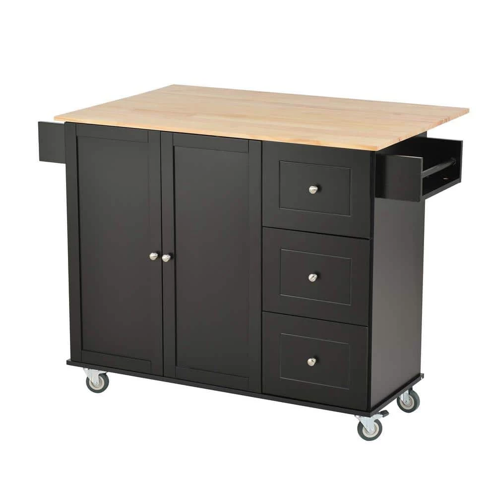 This delicate kitchen island will bring convenience and more. living space to your life. It could perfectly match your decoration style and give your kitchen a high-end look. This island has a storage cabinet, three drawers, a foldable drop-leaf, and two lockable wheels. You can put small kitchen appliances and tableware into the cabinet and drawers to make your kitchen more. neat and organized. This island is suitable for both cooking and eating. The island is movable, so you can put it anywhere and includes two locking wheels. more.over, putting down the drop-leaf will save you more. space.