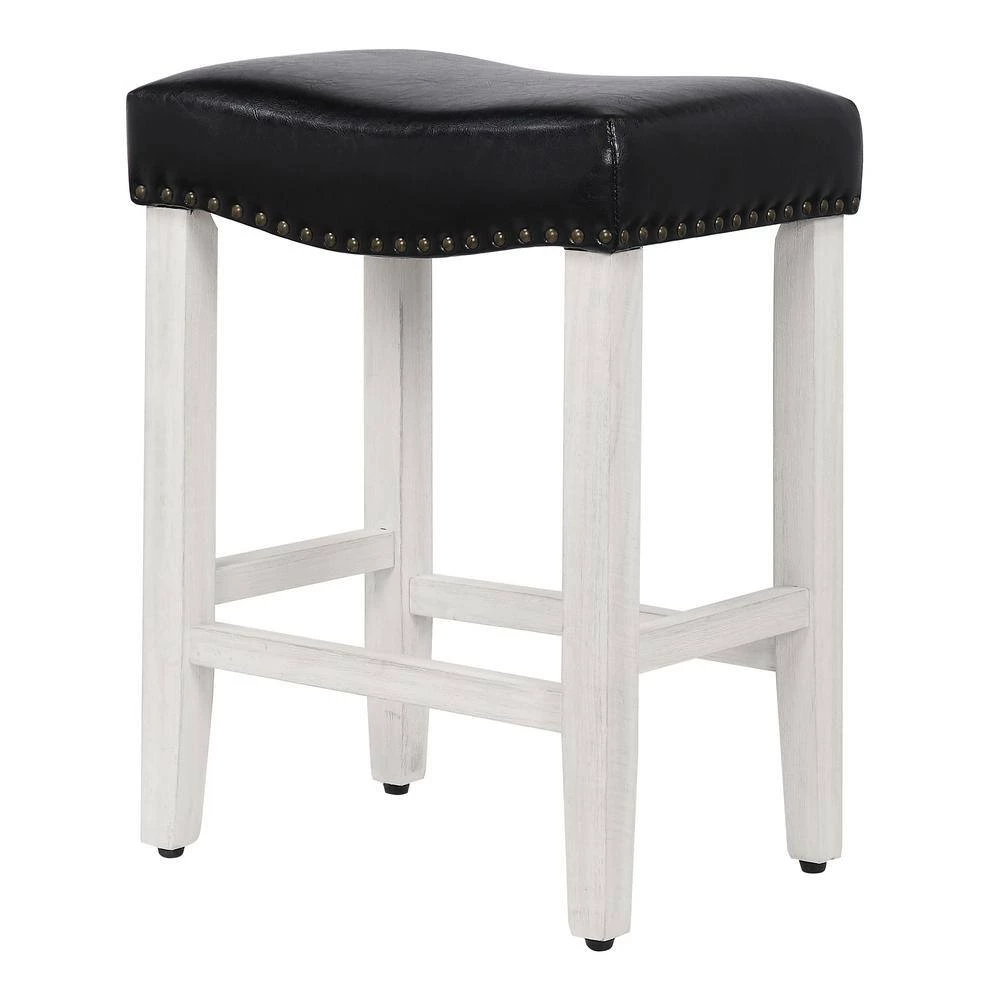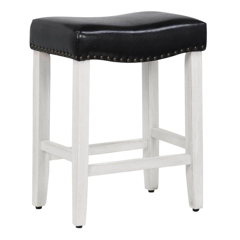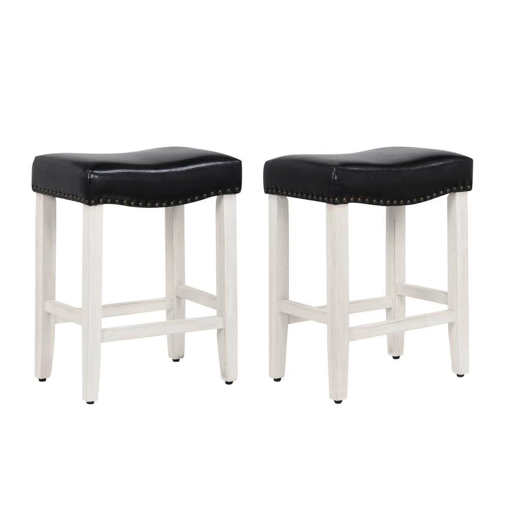 Jameson 24 in. Antique White Backless Wood Counter Stool with Black Faux Leather Seat (Set of 2) by WESTIN OUTDOOR