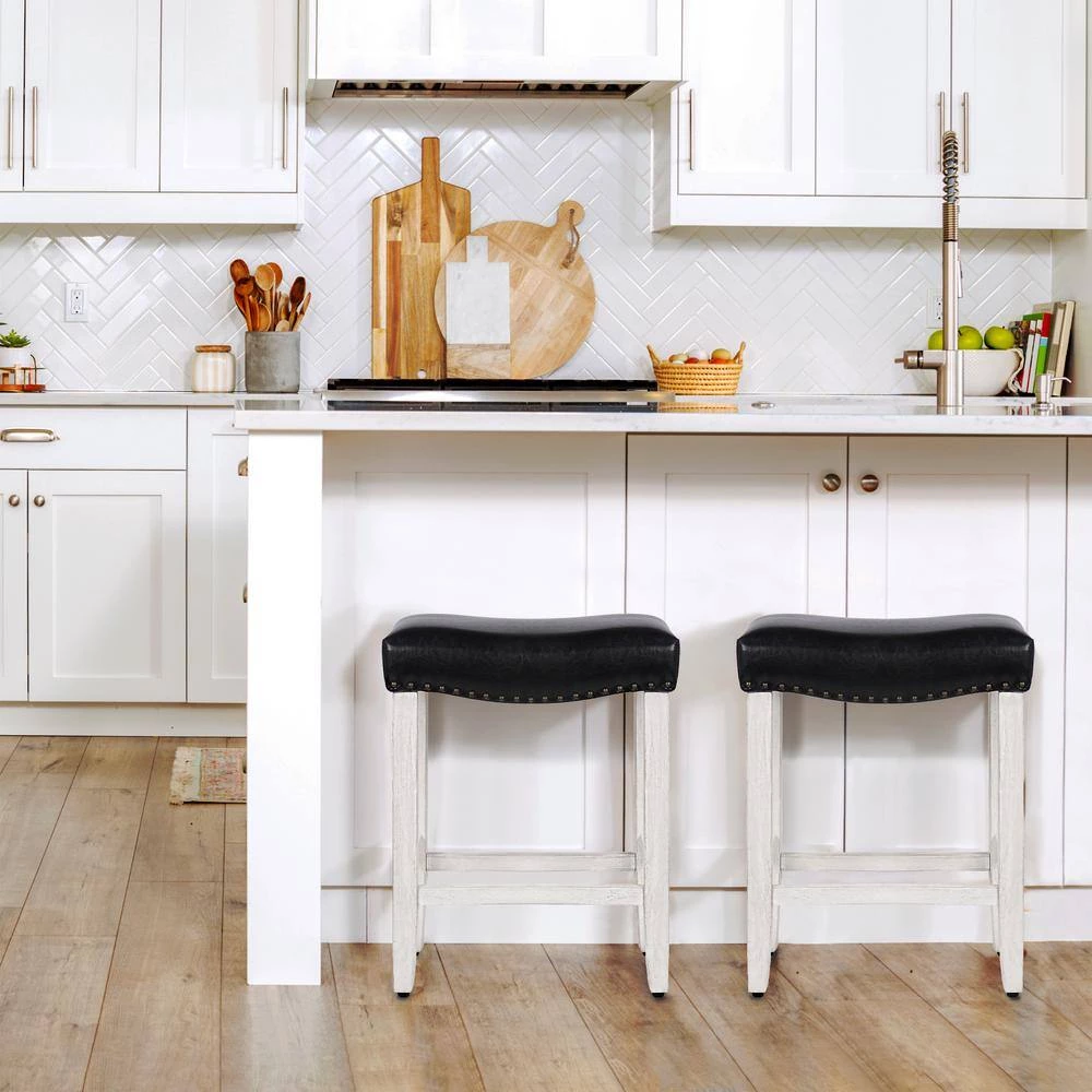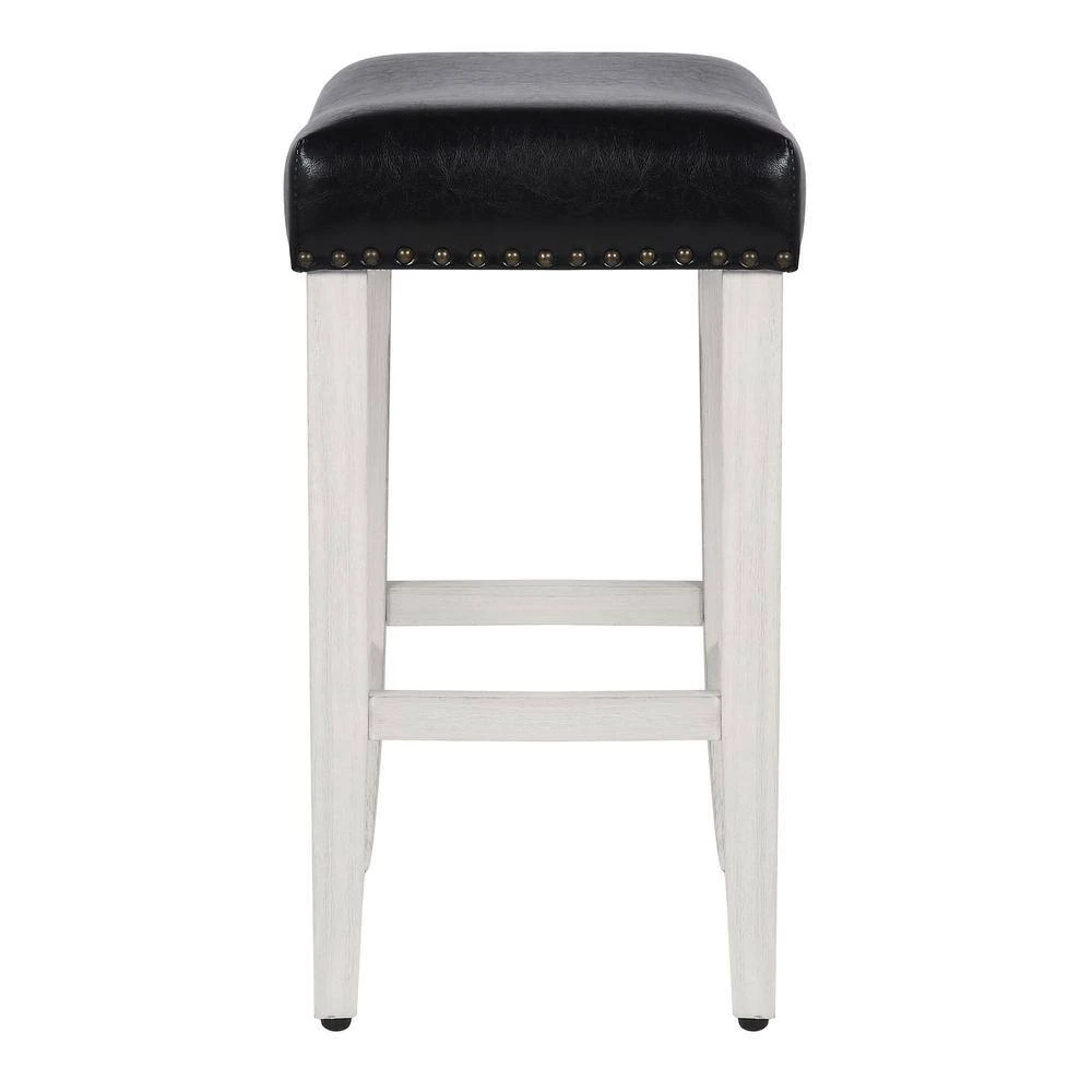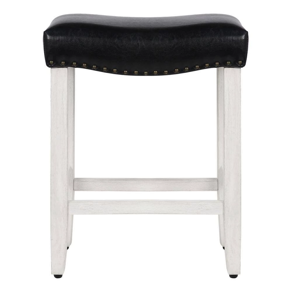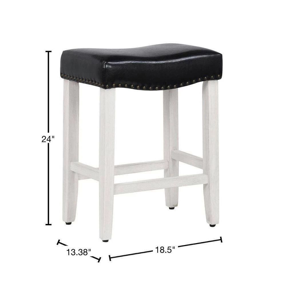 Jameson 24 in. Antique White Backless Wood Counter Stool with Black Faux Leather Seat (Set of 2) by WESTIN OUTDOOR