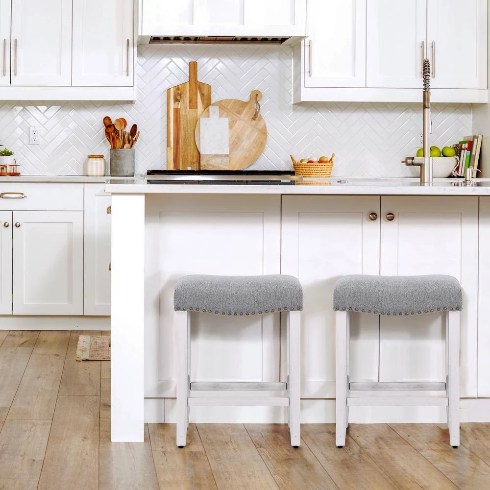 Ideal for your kitchen and home bar, these sleek and sophisticated stools will bring you style and comfort with the well-cushioned foam filled seat. Crafted from high quality solid rubberwood they feature a streamlined base fitted with a must-have footrest and an upholstered saddle-style seat wrapped in elegant nail head trim. These stools are the perfect pick to give your home a refreshing update.