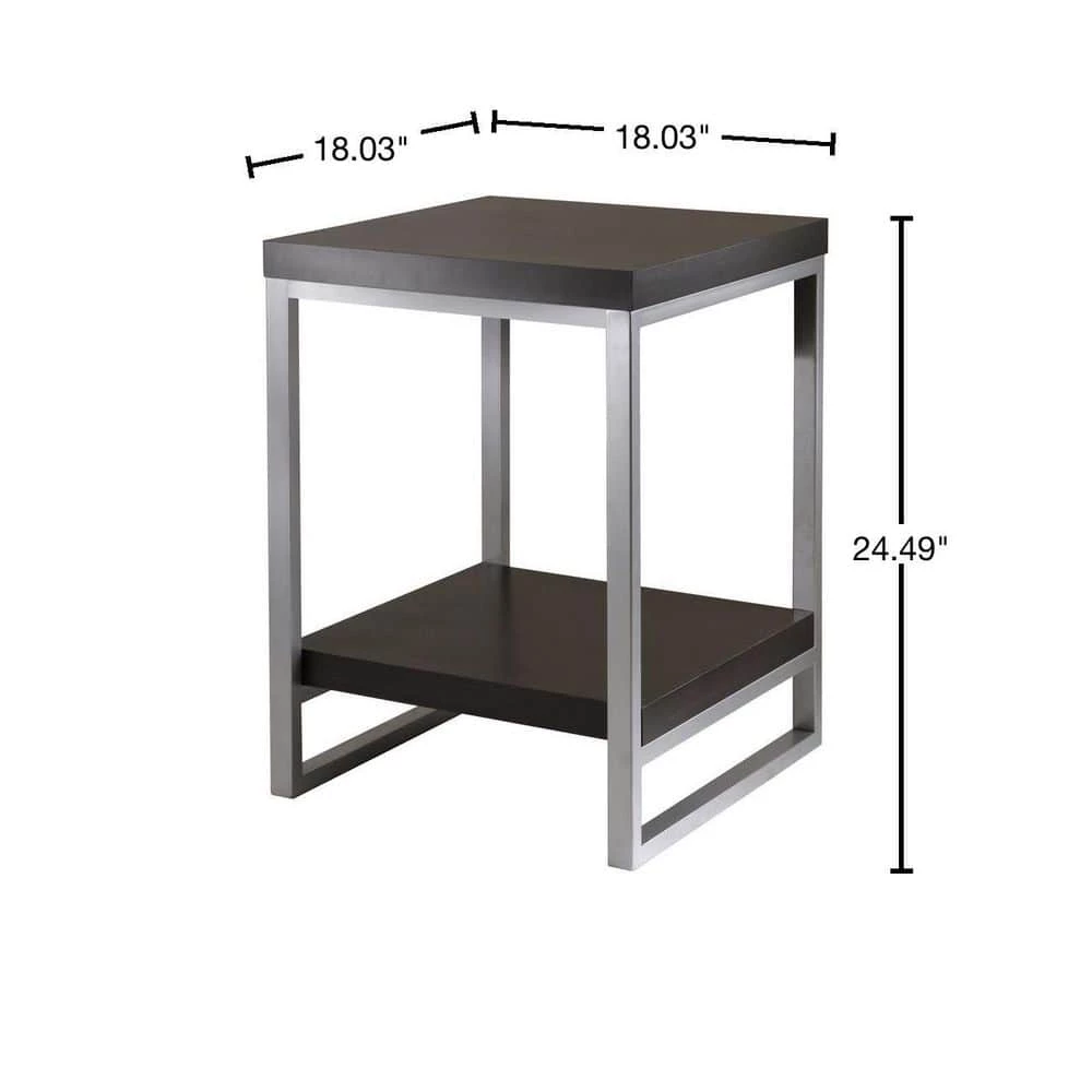 Place the Winsome Wood Jared End Table at the end of your couch to beautifully complete the design of your room. This end table features a classic style, which will enhance your interior design with a timeless piece. It is made with a wooden top, so it has visual appeal that complements any setting. It has a metal frame, so it is a perfect choice for adding modern aesthetics to your interior design.