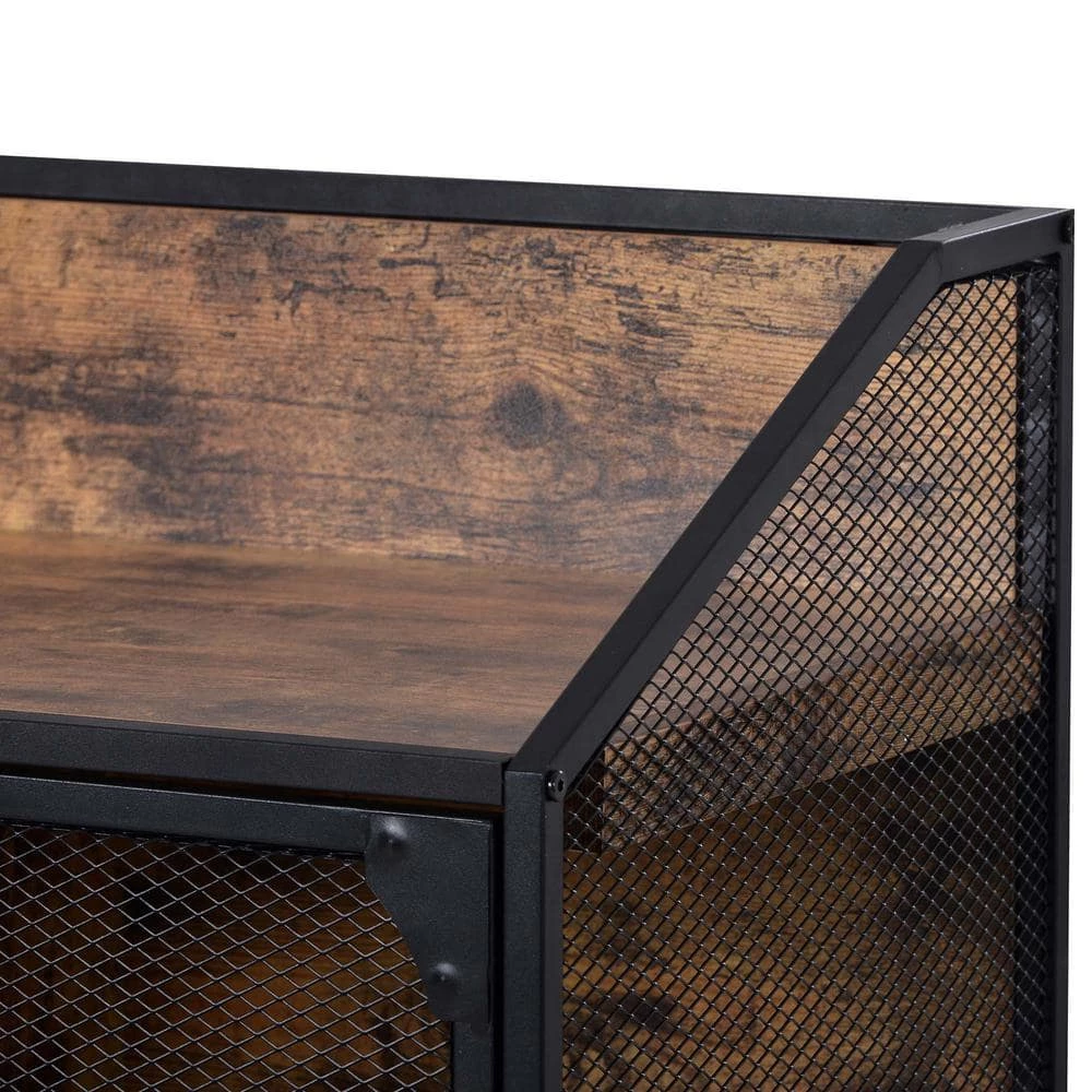 The natural wood grain pairs perfectly with the steel frame in a black powder coating finish, creating a classic industrial feel in your home that is neutral enough to compliment a variety of unique interior styles by blending in seamlessly. This cabinet is made of iron and high-quality MDF, which is very strong and durable. The iron surface has a black coating to protect the interior from rust. Let it serve you longer.
