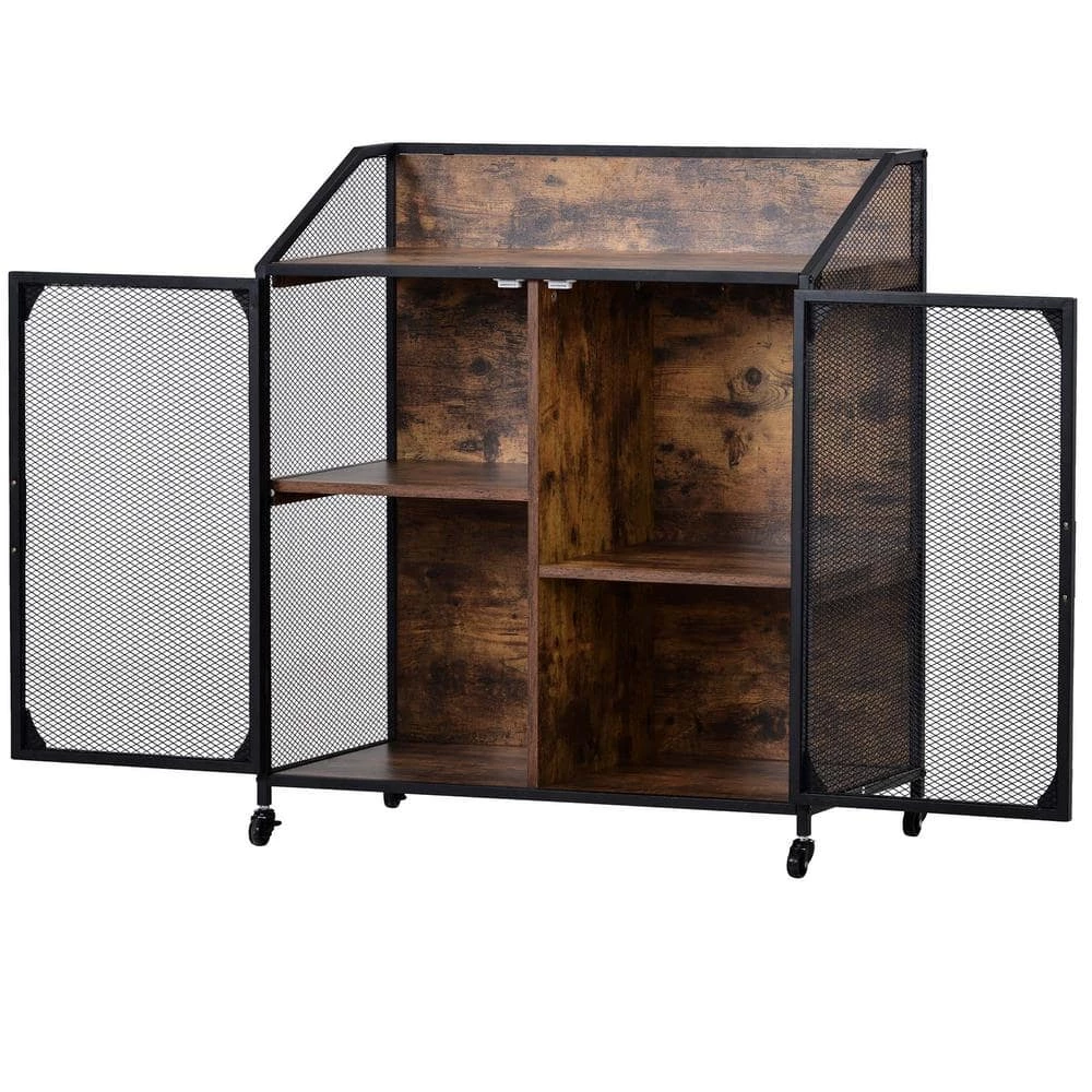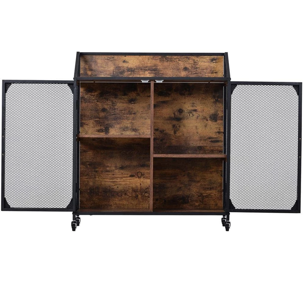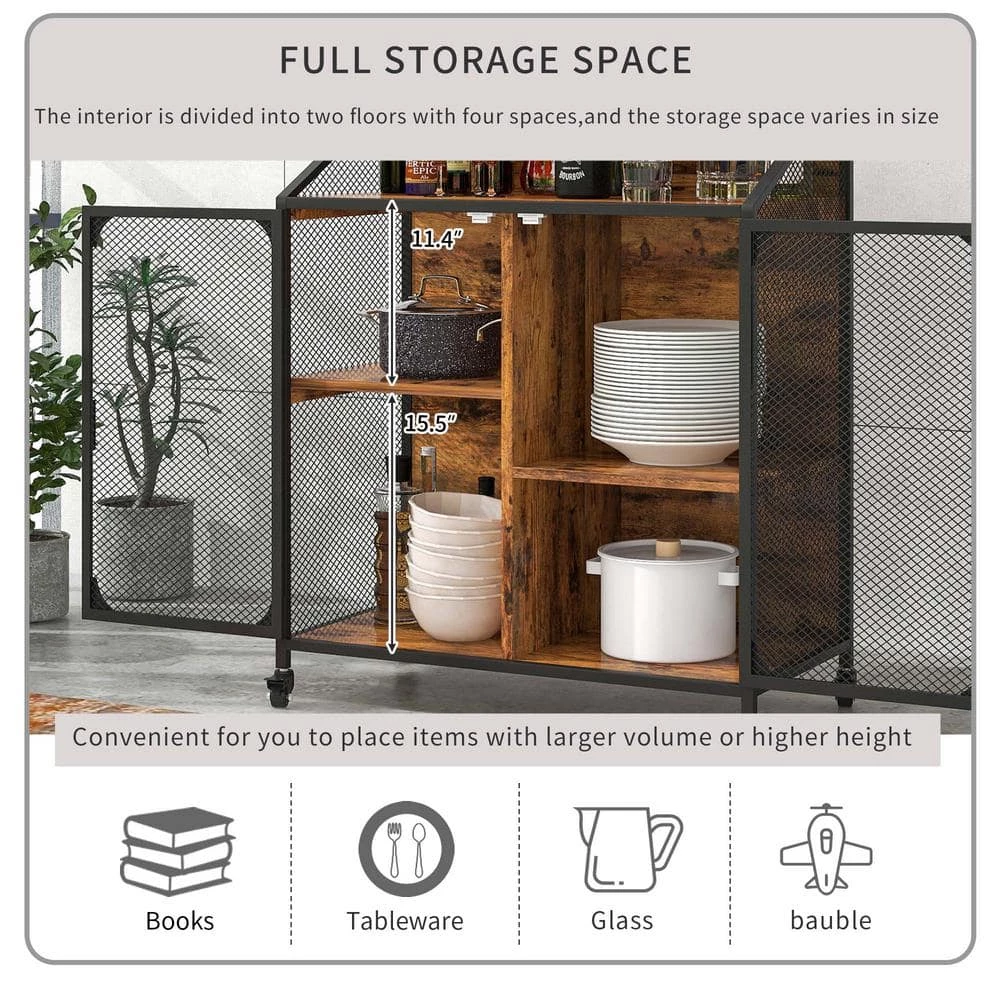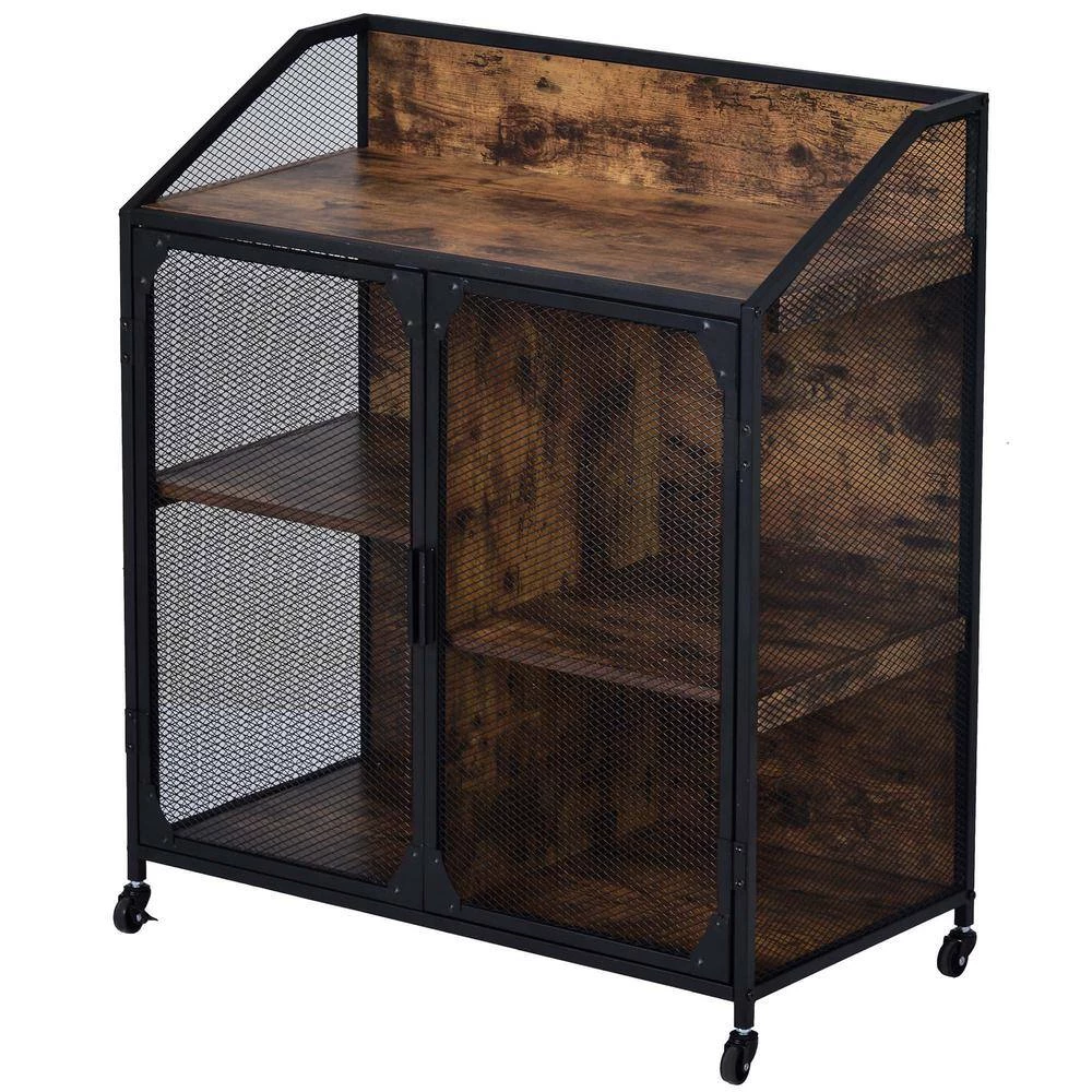 - Iron mesh doors are more durable, firm and not easily deformed. Universal wheels are easy to move and effortless. Four storage spaces vary in size.