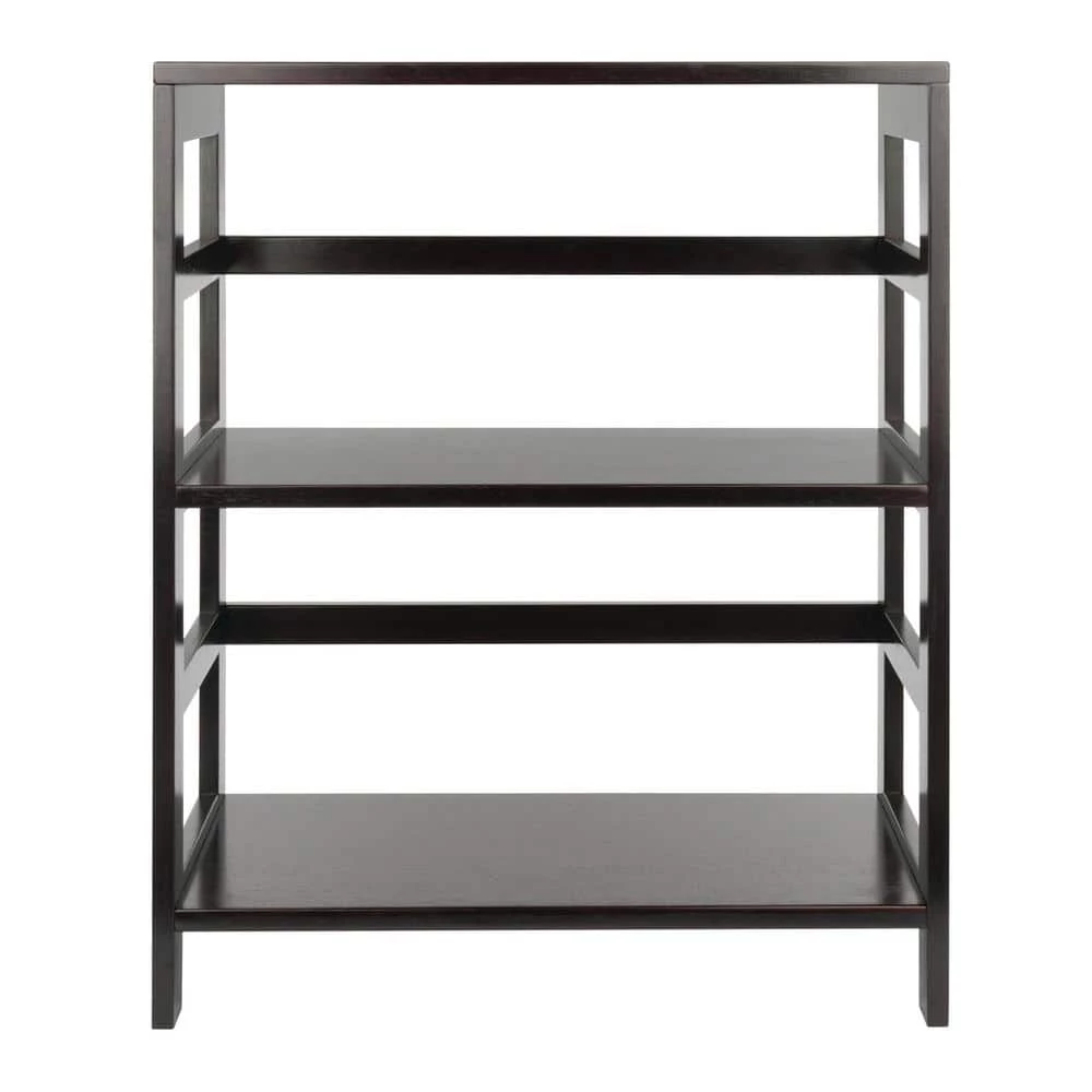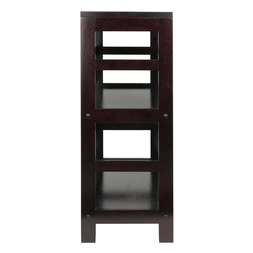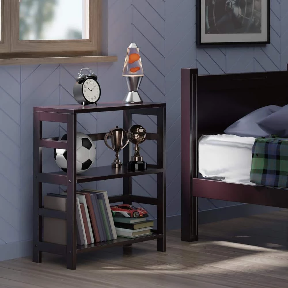 With its classic, sturdy design, this elegant shelving unit fulfills both style and functionality requirements. Its two wide sections can hold a combination of small and large espresso storage baskets perfectly and can be used to store books, toys, magazines, and any other accessories you may want to hide away. Easily mix and match with the other Leo Espresso Storage Shelves for additional storage. This shelf’s assembled dimension is 25.2″W x 11.2″D x 25.2″H and the two inner shelves are 23.6″W x 11.1″D x 12″H with a static weight of 25 lbs per shelf. Made from combination of solid and composite wood in an espresso finish. Assembly required.