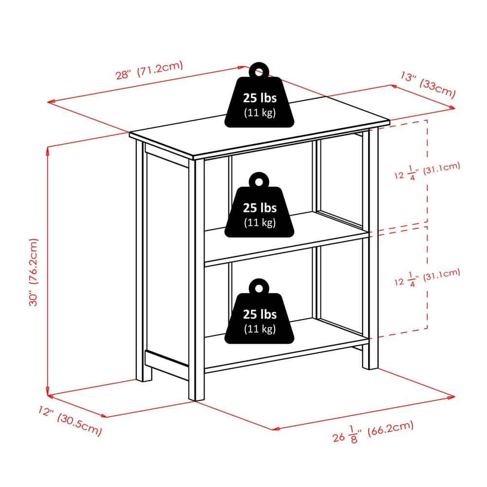 - Overall 3-Tier Shelf size is 28″W x 13″D x 30″H.