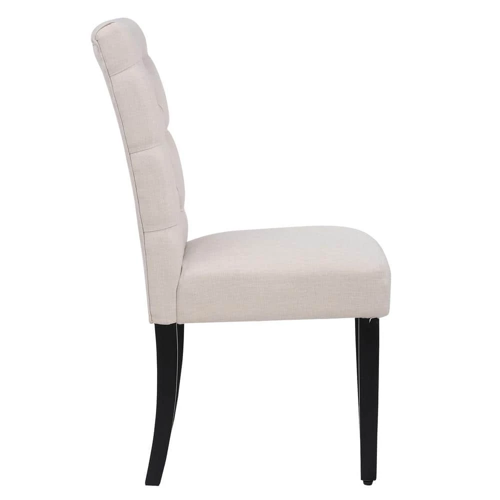 A traditional classic style meets the new modern world of dining. This beautiful soft linen fabric side chair with a button tufted backrest is sure to set your dining room apart from the rest. The perfect solution for any Kitchen,Living Room or Bedroom seating. The subtle details allow it to be matched with almost any existing dining table or existing furniture.