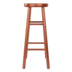 This contemporary saddle seat 29 in. Wood counter height stool is a great seating addition for the kitchen or dining area. Made of solid wood in a natural finish, the stool provides a sturdy and quality place to sit. The overall stool size is 17.9 in. W x 15.8 in. D x 28.9 in. H and has a seat dimension of 17.5 in. W x 8.9 in. D . Ships ready to assemble with all hardware and tools included.