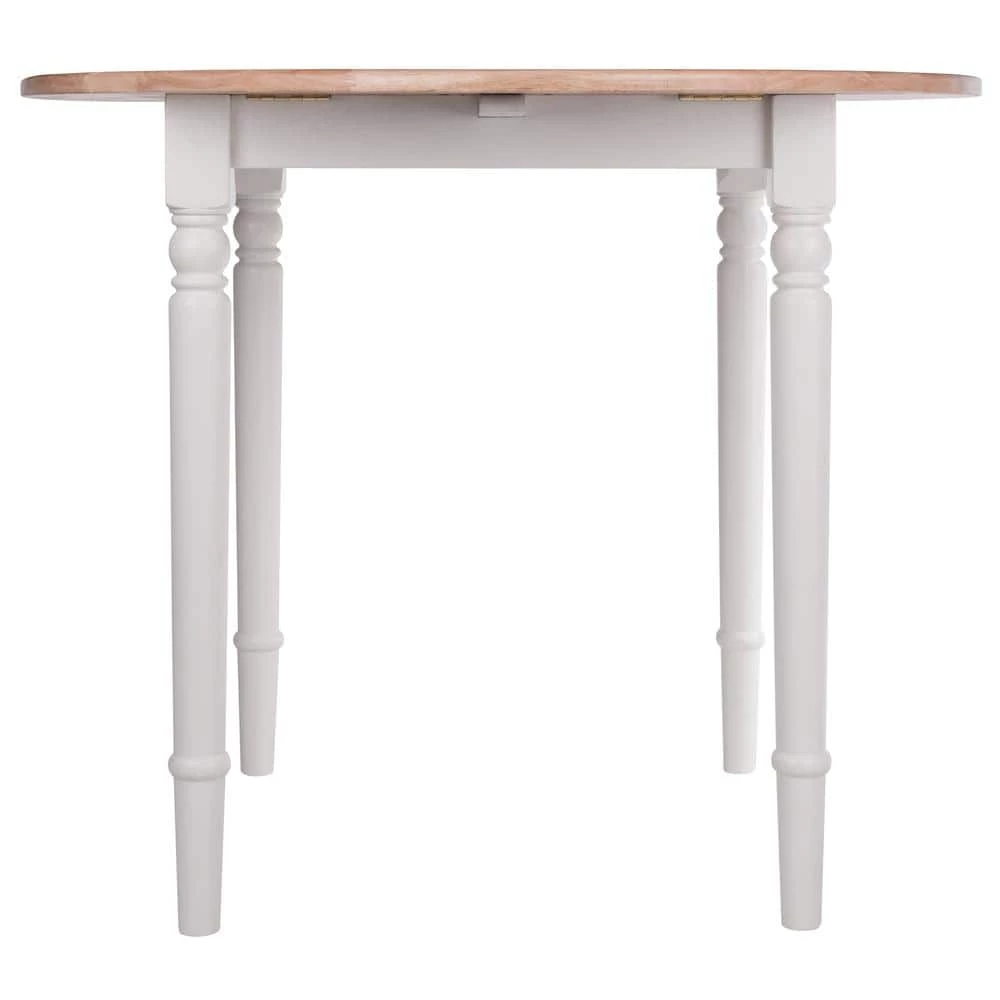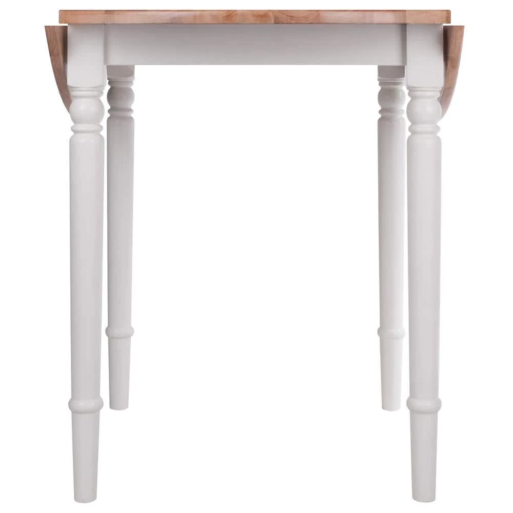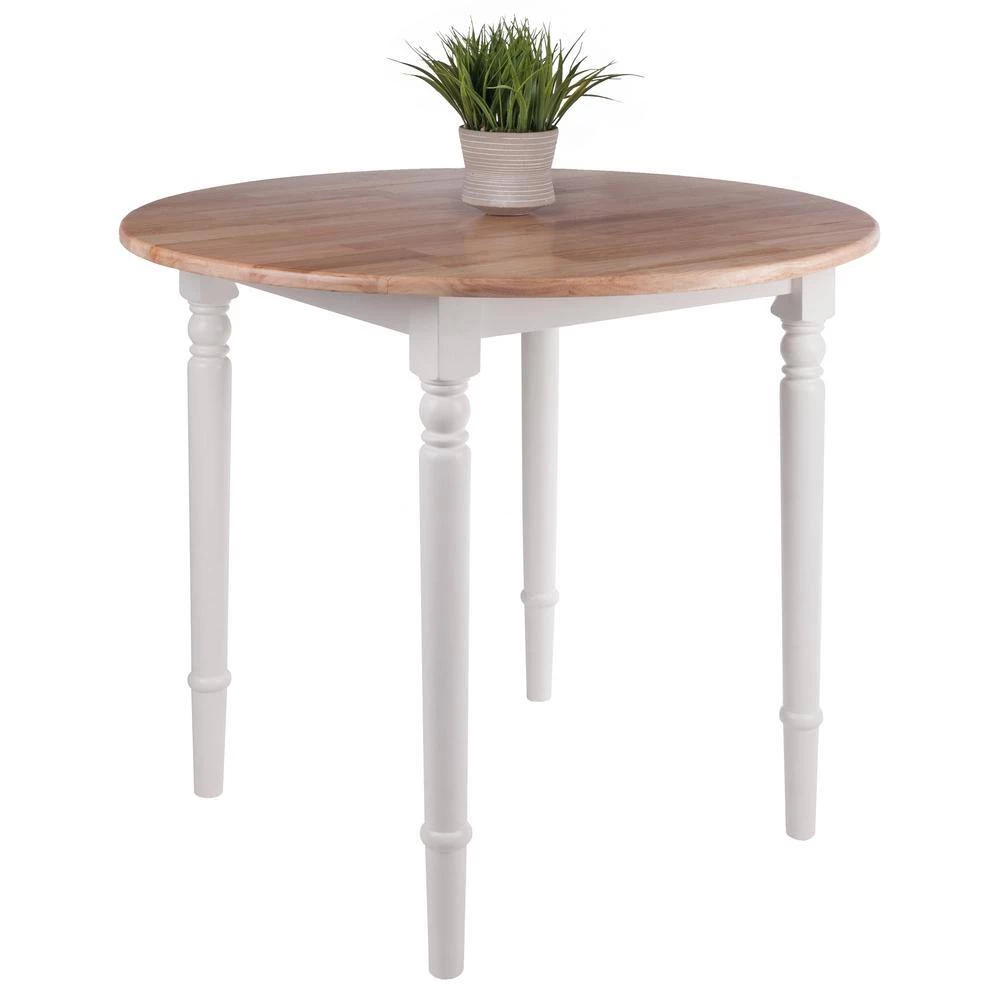 The warmth of Natural wood with bright White trim is a time-honored partnership for good reason. The look is crisp and stunning. And with the Sorella Round Drop Leaf Dining Table, the farmhouse styling will brighten your kitchen, dining room or family room. The graceful detailing of the turned legs and the full aprons all in White provide a solid base for the Natural round tabletop with its two drop leaves. Fold the leaves down and use the table as a console, or in a breakfast nook for two. With the leaves open, the table offers ample seating for four for dinner or a special Sunday brunch. The table is made of Solid Wood for long-lasting durability.Dimensions: 30.3″H x 35.4″W x 35.4″D (with leaves open) 30.3″H x 35.4″W x 24.7″D (with both leaves lowered)Assembly requiredShips in 1 box