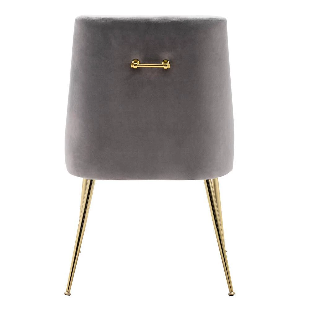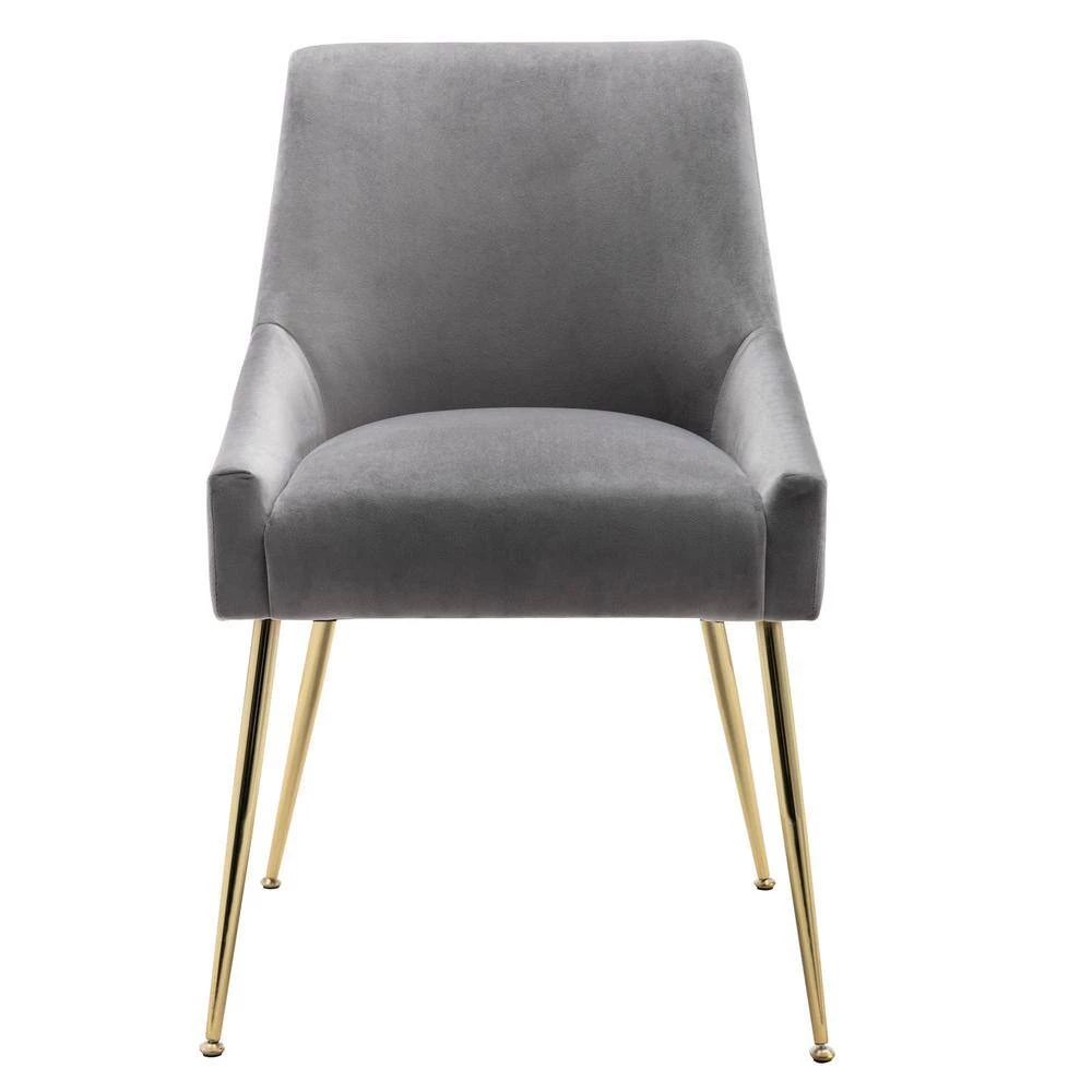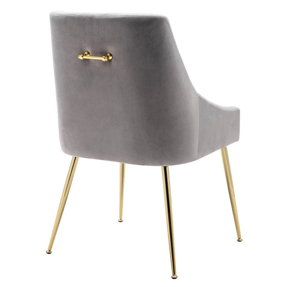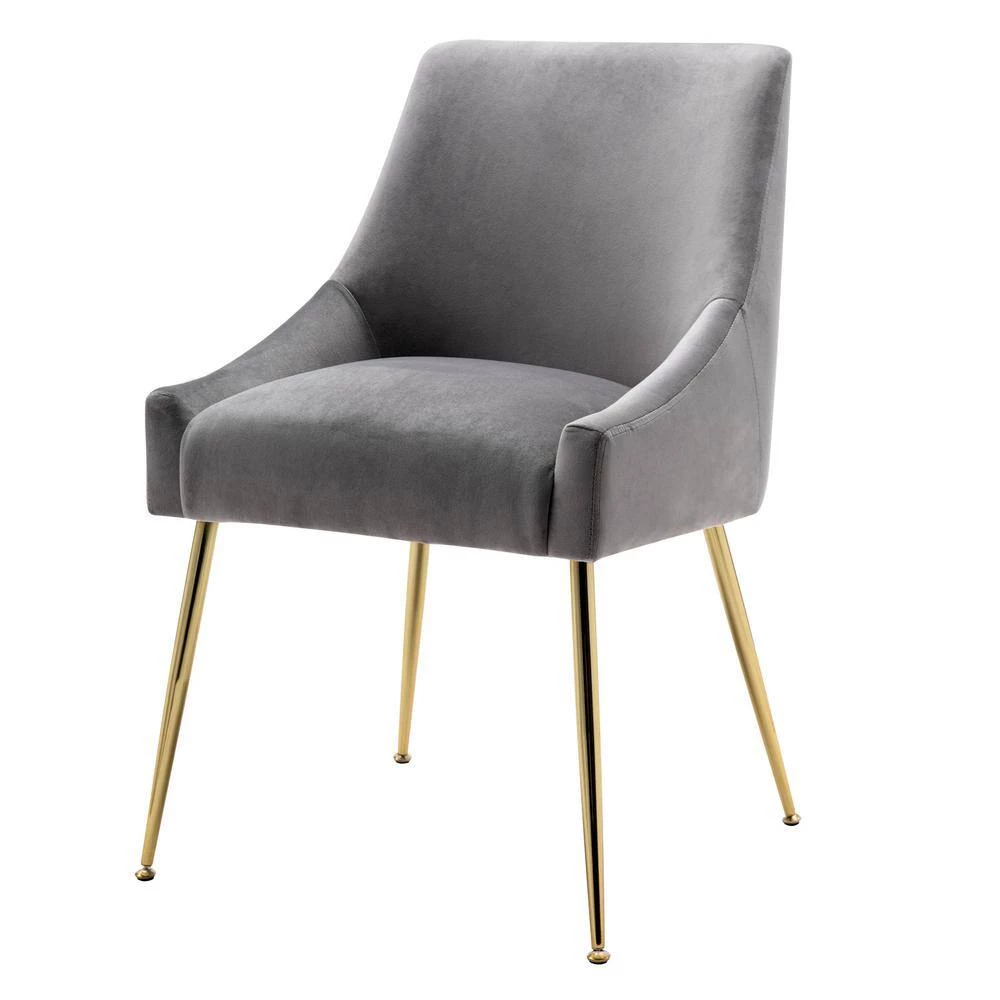 The simple velvet design will add a touch of glam to your living or dining room. Built with a solid wood frame that sits on metal legs, its upholstered in soft velvet fabric. It features low recessed arms and a curved back. The flared metal legs show off a subtle mid-century modern look and a luminous gold finish for a luxe feel. The added gold accent bar on the back adds the perfect touch of detail and helps you move the chair.